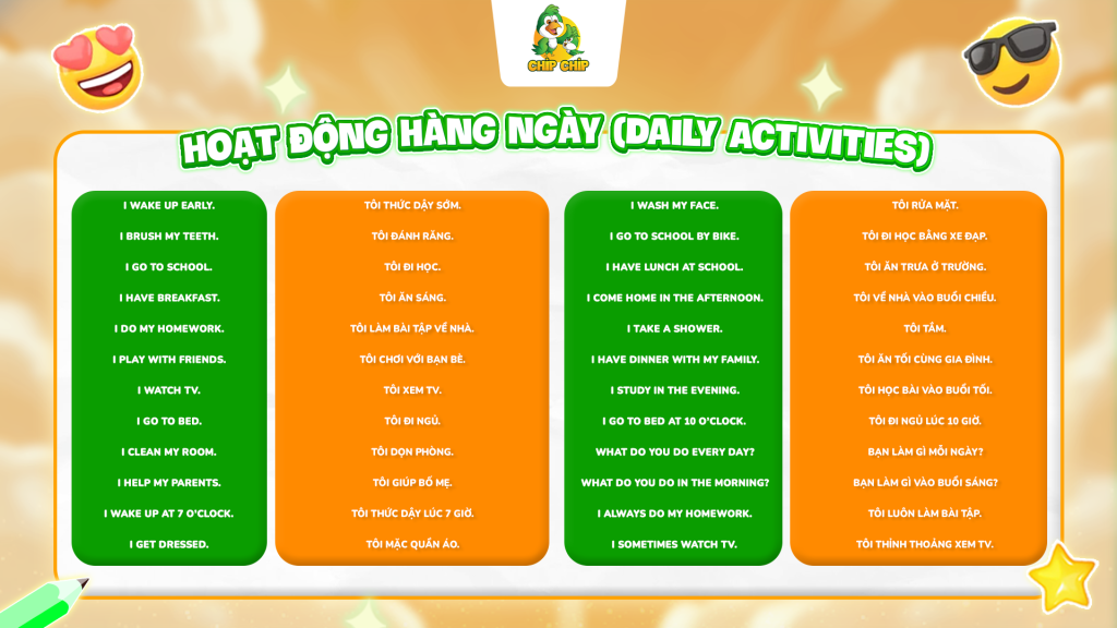 Chủ đề 10: Hoạt động hàng ngày (Daily Activities)